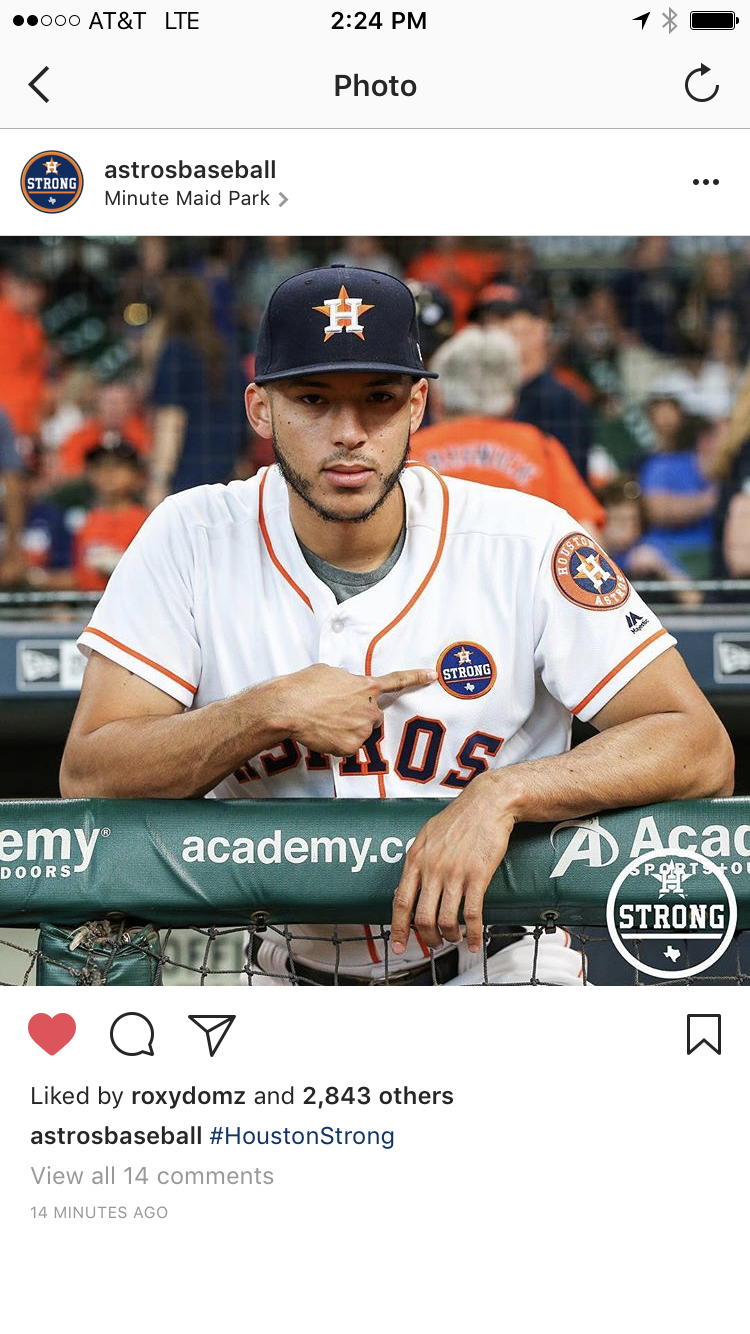The Astros wore this logo on their chest during their first game back to Houston after the catastrophic Harvey flood and continued to wear it throughout the remainder of the season and all the way through the World Series game seven win